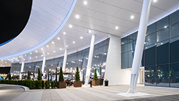 Using a pressure equalized rain-screen composite panel system, MG McGrath Inc. fabricated and installed over 6,750 square feet of Reynobond® Composite Material along the roof and soffit line in a high perfoming, coil coated Colorweld® 500 Kuala White finish backed by a 30-year warranty that will be sure to leave the casino and resort an area staple for years to come.